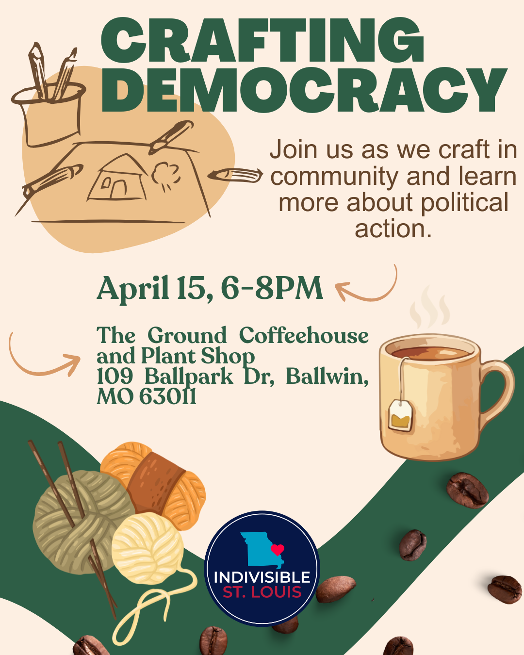 Are you ready to get politically active, but you're not sure how? Join us for a craft night with a twist! Enjoy the company of your fellow crafters and democracy-defenders as we learn more about the specific ways we can get involved and carry on the fight. Click here to learn more.